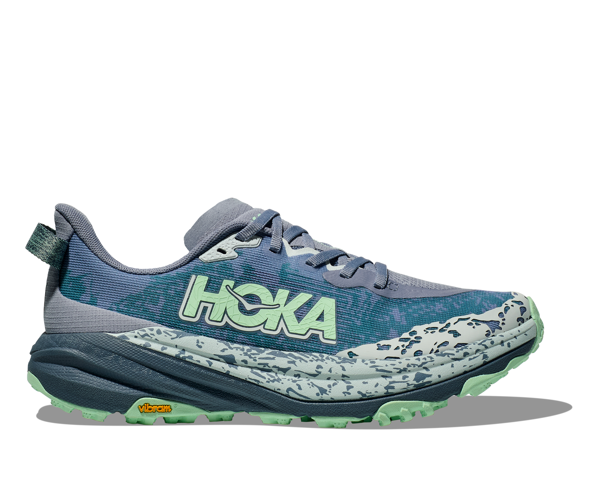 Combining HOKA’s tried and true cushioning with aggressive traction and ultralight materials, the Speedgoat 6 was born to tame the trail. A workhorse for technical terrain, this recent reissue was refined with a breathable woven textile upper, foot-hugging internal chassis, plusher dual gusset tongue, and revised lug orientation inspired by the hoof of a goat (what else?)